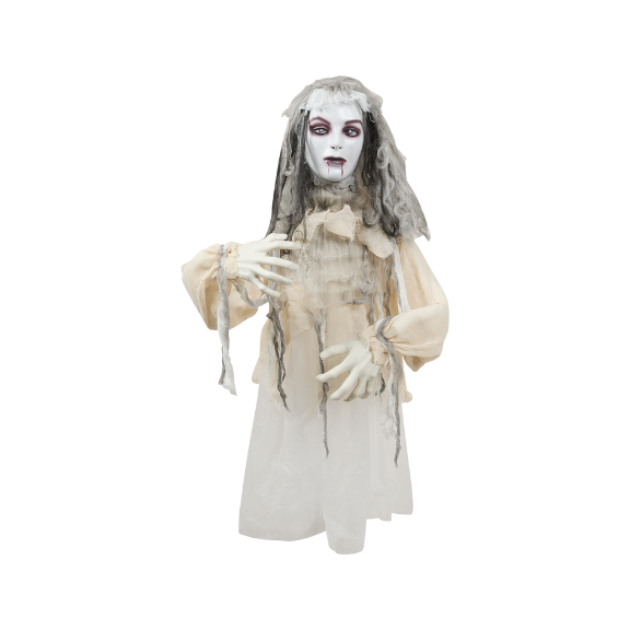 Dzięki realistycznym efektom świetlnym, dźwiękowym i ruchowym wywołują ciarki na plecach i przyprawiają gości o dreszcze. Niezależnie od tego, czy to martwa panna młoda, czarownica czy inne upiorne stworzenia – animowane figury dostępne są w różnych rozmiarach, już od 60zl. Gdy ktoś się zbliży, ożywają, mrugając oczami, wydając przerażające dźwięki i wykonując upiorne ruchy. Idealne do ustawienia przy wejściu, w ogrodzie lub jako szokujący element przyciągający wzrok na każdej halloweenowej imprezie.